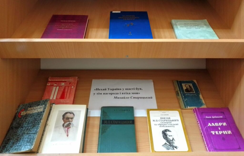 З нагоди ювілею в бібліотеці Університету проходить виставка-огляд матеріалів із фонду книгозбірні, присвячених літературній та творчій діяльності Михайла Старицького.